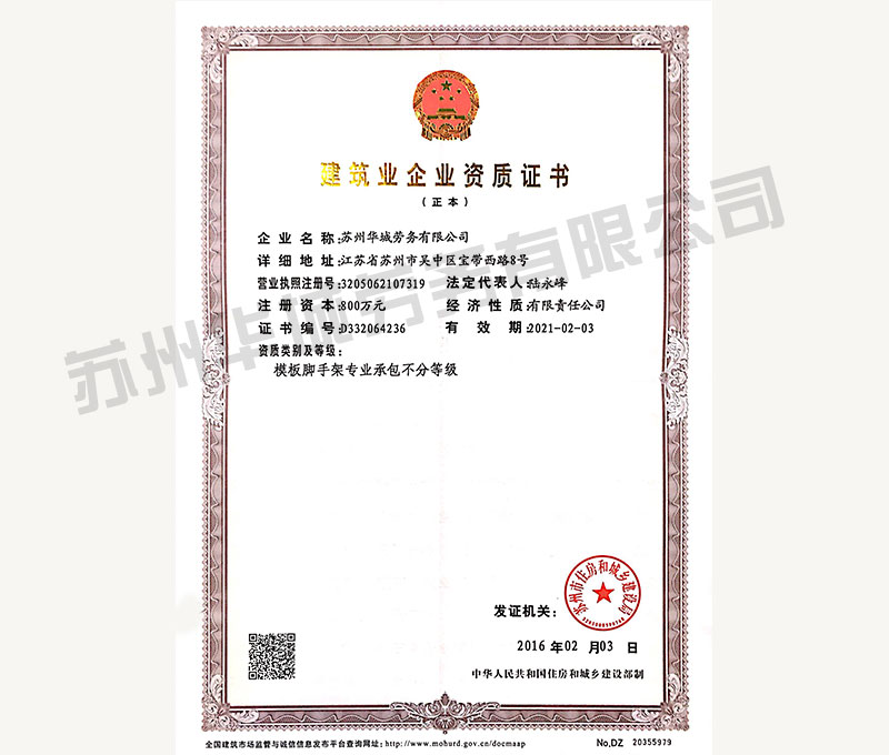 可以承接房屋建筑室內外裝飾裝修業務。公司下設獨立法人單位-蘇州華城勞務有限公司。